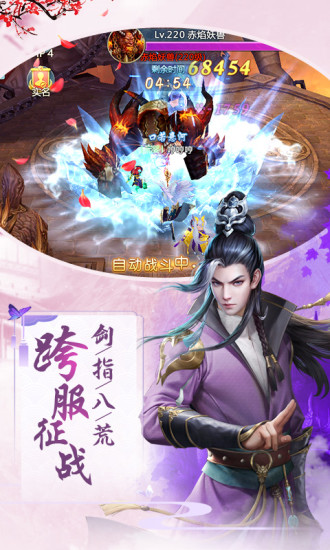 3.离线挂机经验值升级,驰骋三界冒险八荒,剑斩邪魔纵横天下,自由闯荡仙域。