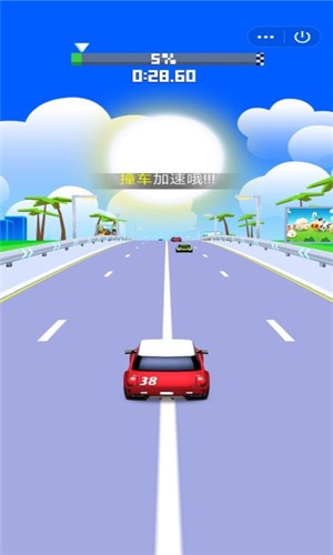 1、全新的加速设置,手指滑动汽车左右移动,撞击路面上的车自动加速;