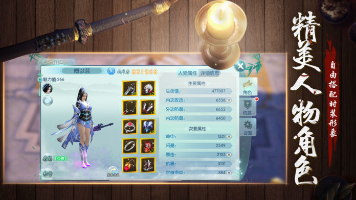 1、自由配对时装形象,精美人物角色,搭配唯美精致的古风仙衣霓裳,展现无尽魅力,多个款式选择。