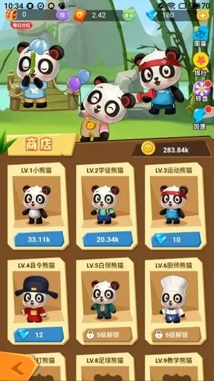 3、把小熊猫轻松养成,解锁各种职业熊猫,圆滚滚的国宝也能工作赚钱;