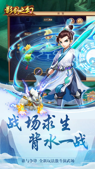 影幻之剑手游是一款激萌q版风格的动作类rpg游戏,在这里热血的三界战场,将实行巅峰对决,等级达到一定界限即可进行转职,新的外观以及战斗技能进行进化,更多荡气回肠的故事剧情穿梭全局,跟随同伴一起来到九州大陆,在这片境地当中完成飞天成仙人物,将获得永生的力量,主宰自己的命运,改变这片大陆的结局,这款游戏有着与众不同的一点,那就是有着非常q萌的人物的塑造,这些人物看起来不是很霸气,但是却非常的可爱,相对来说非常的精致,各种技能非常的炫酷,而且这个游戏采用的是回合制的游戏,告别了非常繁琐的操作,玩家可以通过放射的方式进行战斗,并且随着等级的提升。