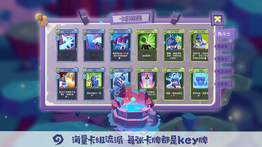 1、你可以选择六个能力不同的英雄开始冒险,每个英雄都有自己专属的卡牌和技能;