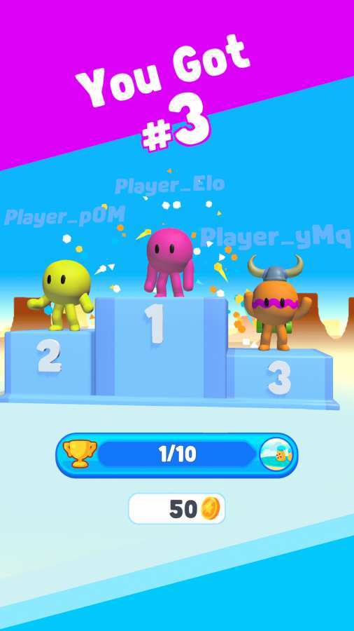 豆豆人淘汰赛不仅玩法相同,画风也是如出一辙,可爱的豆豆人像五彩缤纷的糖果般滚动,每个玩家的游戏体验也不同,在这款游戏中玩家尽可能的生存,活到最后就是第一名,游戏画面也是十分卡通风,获得游戏的皇冠了,有些对手会对你使坏,拉你下去之类的,要小心点,玩家需要将对手淘汰直奔终点,游戏的画面很是清新简约,采用的是卡通的风格,角色的设计很是可爱呆萌,玩家在这里可以操控着角色在这里进行冒险,很是考验玩家的操作性,各种各样的地形可以解锁,在这里可以和其他的玩家来展开竞技,争相往前奔跑,玩起来很是有趣,有兴趣的快来下载豆豆人淘汰赛体验吧。