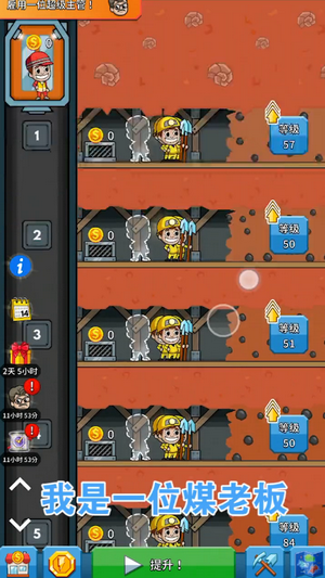矿业大亨红包版是一个非常好的赚钱采矿游戏,在这里,您将扮演矿工的角色,并不断升级自己的矿山,以便您可以挖掘更多的矿山,招募员工,改善员工设备并简化采矿工作,多种娱乐模式和游戏玩法,整体节奏相对较慢,您可以来玩吧,如果您感到无聊,级别越高,您将获得的红包奖励越多,精彩而非凡,您应得到的!