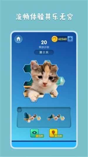 3.在这个奇妙的拼图世界中,你可以为尽情的展现你的脑力思维,完成更困难的拼图。