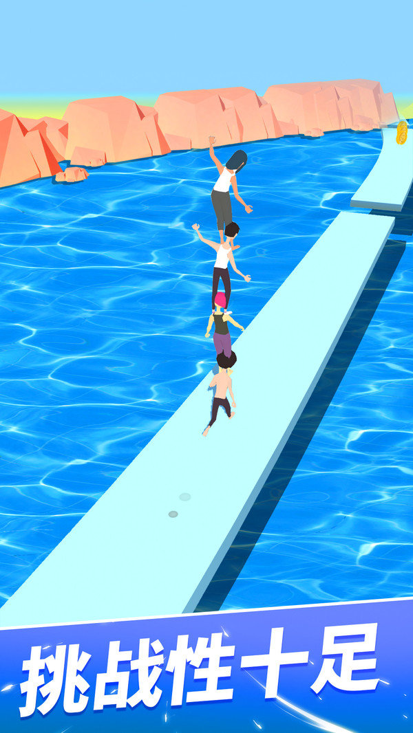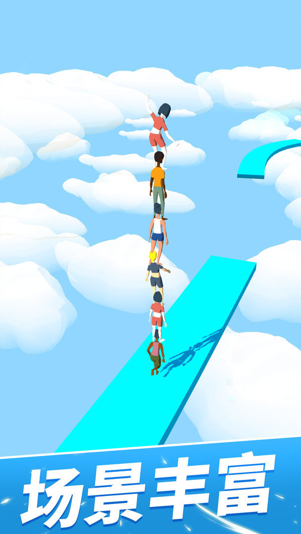 一起叠叠乐手游玩法简单,及时点击屏幕起跳将人叠加在一起即可,最后到达终点人物越多得分也就越高,该游戏与踩方块跑酷的玩法和规则都非常相像,游戏中主要是将全部方块变成了人,在跑酷过程中玩家将会需要踩着更多的人来搭建起人梯,不断通过前方的障碍物,玩家需要操控游戏中的小人,准确的叠在其他角色身上,游戏中叠的数量越多评分也会越高,游戏界面十分清晰,在游戏中享受奔跑的乐趣,每一个关卡都有不同的障碍,喜欢的不要错过。