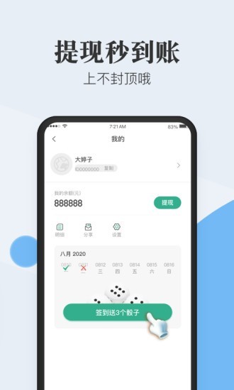 2、每一次完成任务都可以领取骰子,可以瓜分更多现金奖励。