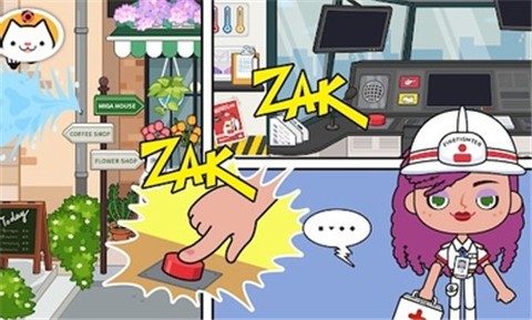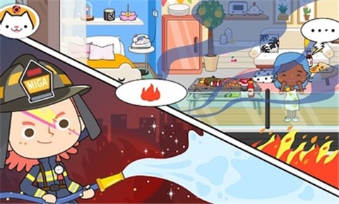 2、自由穿梭在不同的场景,尽情体验米加小镇的休闲娱乐时光,完成专业救援