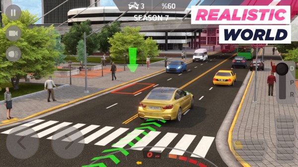游戏中玩家将来到真实的城市环境中来训练自己的驾驶技术,成功的将车辆停靠在指定的位置。