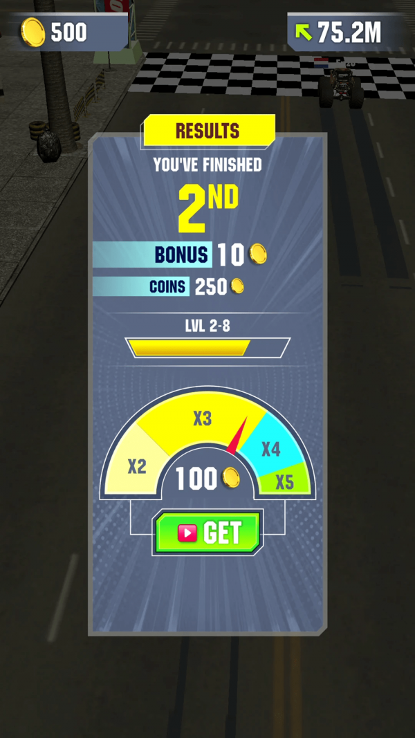 2、无需其他华丽的大技巧,您只需用一根手指即可控制赛车,以完成比赛并增加积分;