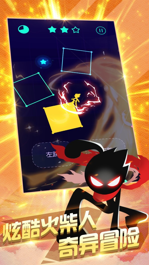 2、在无尽的夜空中,通过火柴人的不断跳跃,它照亮了丰富多彩的夜空。