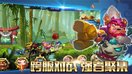 1、轻快的竞技节奏,核心对抗迅速进入,操作主角走上战场,赋予新的使命,就是击败在场的对手。