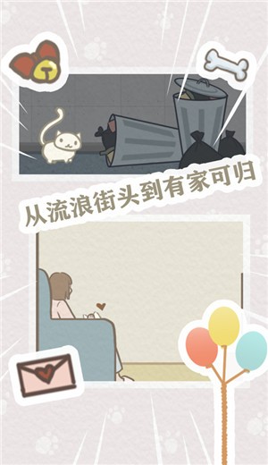 1、化身聪明猫咪,从流浪街头开始冒险,最终获得温暖小家。