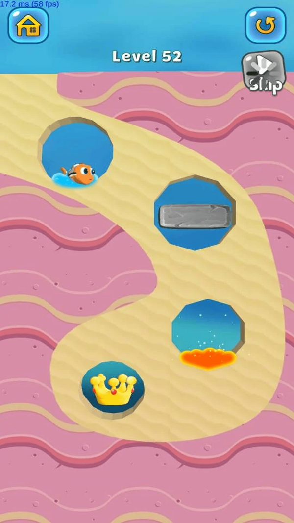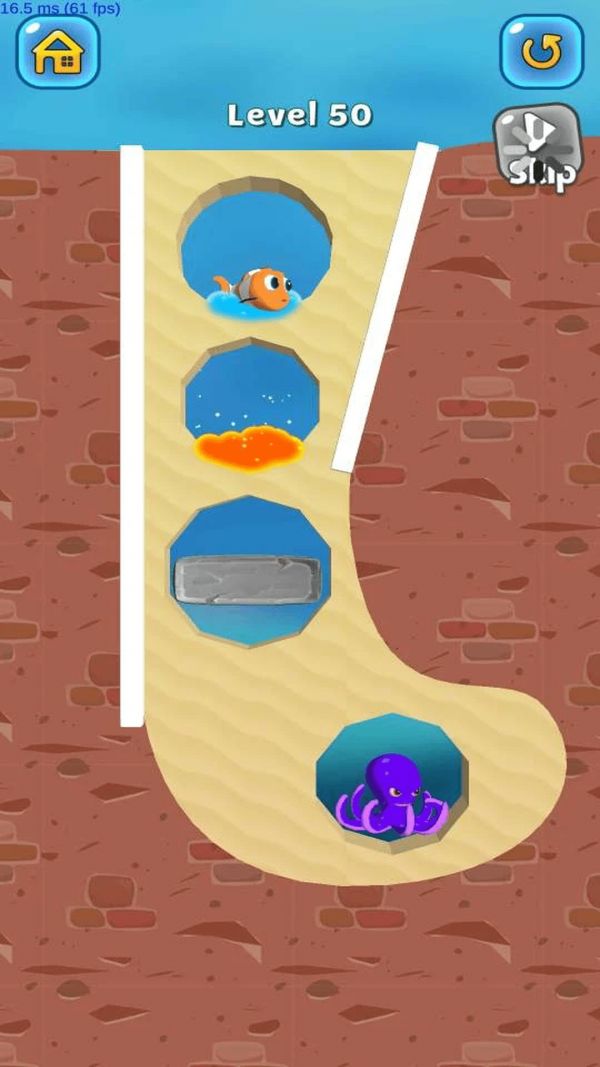 3、超多关卡等你来战,在游戏中,玩家只需用手指挖掘,将鱼儿引到水中即可。