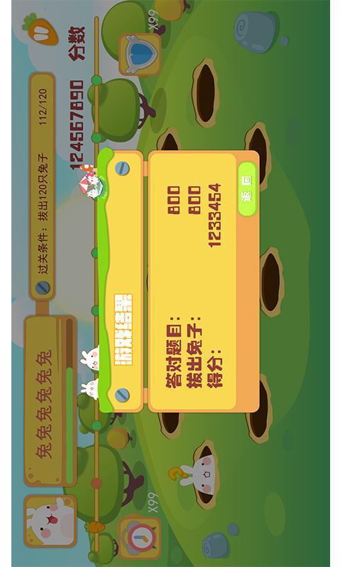 1、玩家所需要做的就是在有限的时间内,消灭足够多的地鼠即可。