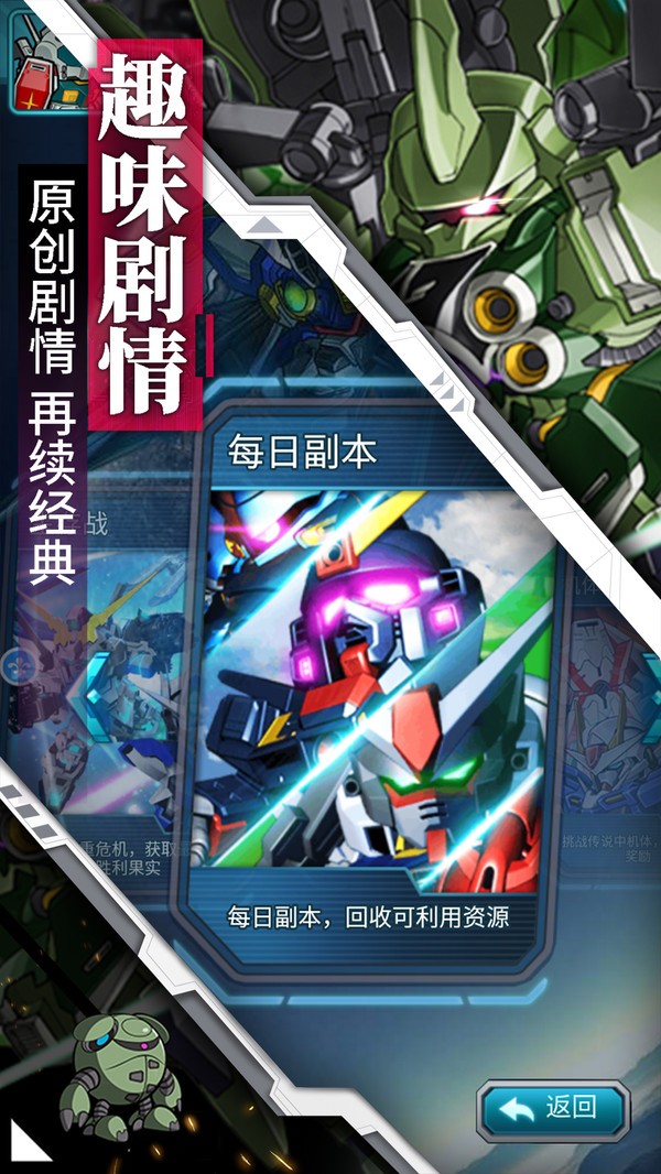 3.每日副本分为金钱副本、经验副本与机体副本,相应可以得到金币、经验值和机体碎片这些资源。