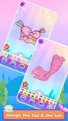 3、需要帮助美人鱼公主去进行打扮,让她成为海洋之中最美丽的公主,多种不同的服装和尾巴可以让玩家去进行选择。