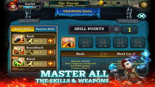 3、高度自由无锁定的探索模式,英雄的战斗世界,你需要升级自己的技能大招。