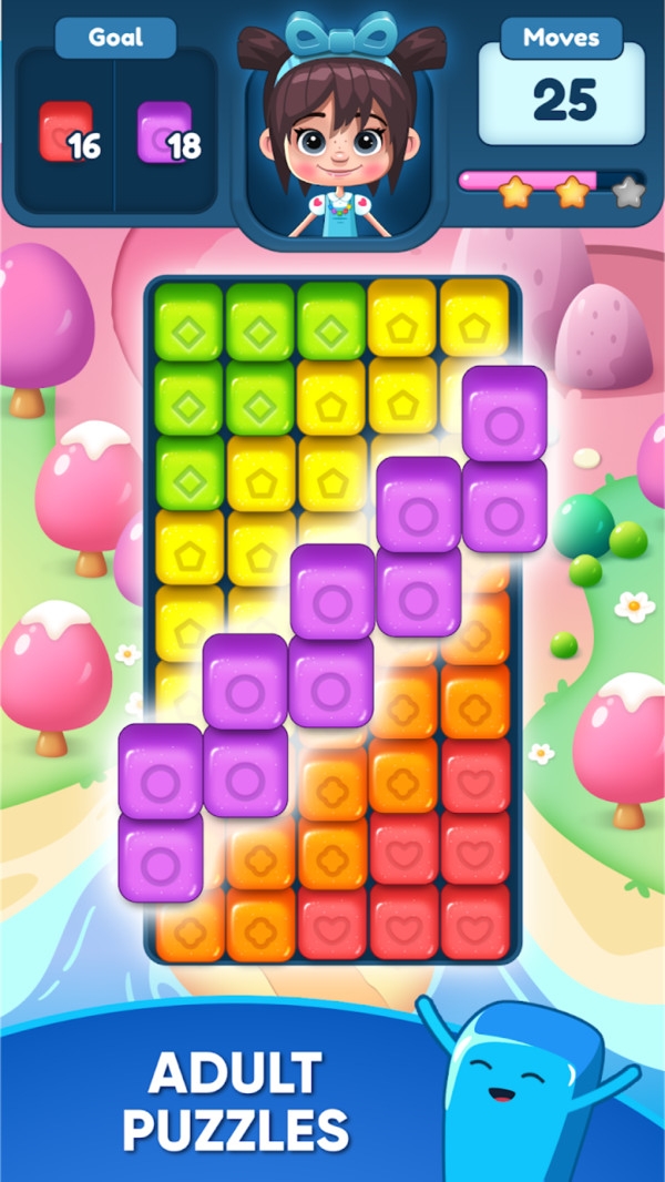 解决难题以帮助果冻团伙在魔法世界中旅行,征服神奇的拼图世方块界。