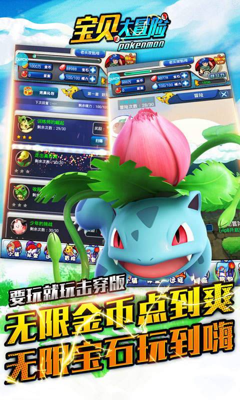 宝贝大冒险游戏采用回合制战斗模式,易操作,上手快,游戏画面精致,玩法多样,高度还原精灵宝可梦,拥有高清场景画质,呈现浓厚日系漫画风格气,丰富的互动剧情和种类繁多的小精灵,极大的丰富了游戏的内容,战斗时排兵布阵,更加注重战斗智慧的体现,操作智能,上手简单。进化之路、黑暗之城经典重现,精彩激的PVP竞技场玩法、充满挑战的游戏副本剧情,战斗暴龙兽、小丑皇、阿尔法兽、还有奥米加兽……人气神宠完美还原,新的冒险,现在开启!