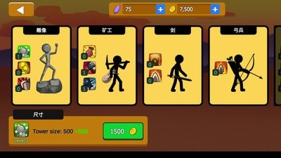 您必须通过开采金币来升级军队,提高火柴人的技能和武器,或者使用额外的工具来击败敌人的火柴人。