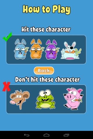 1、在游戏开始后,各类地鼠疯狂地从地洞中钻出来,且他们停留的时间很短,玩家需要通过手动方式敲打他们,击中获得分数,最后在限定时间内达成目标分数即可过关。
