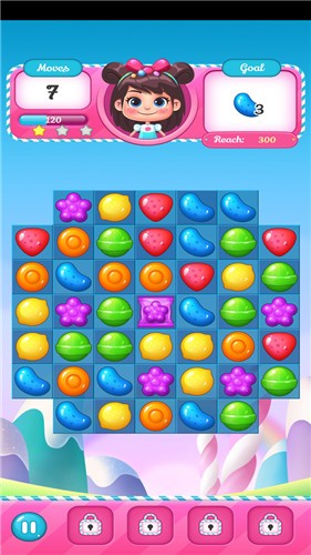 1、将3个可爱的可爱的糖果配成一个完整的水平!