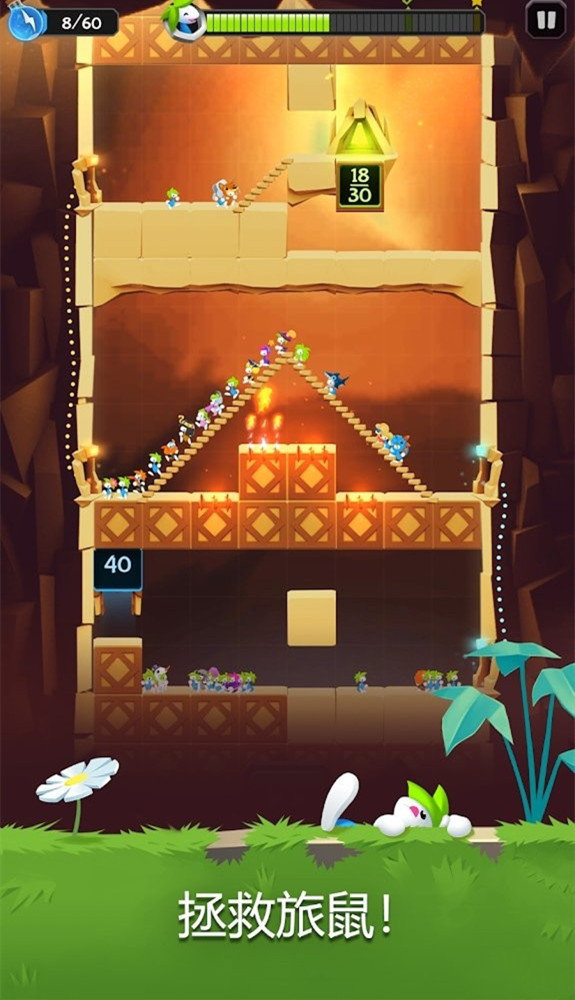 - 简单的一键式控制意味着你可以随时随地拯救旅鼠!