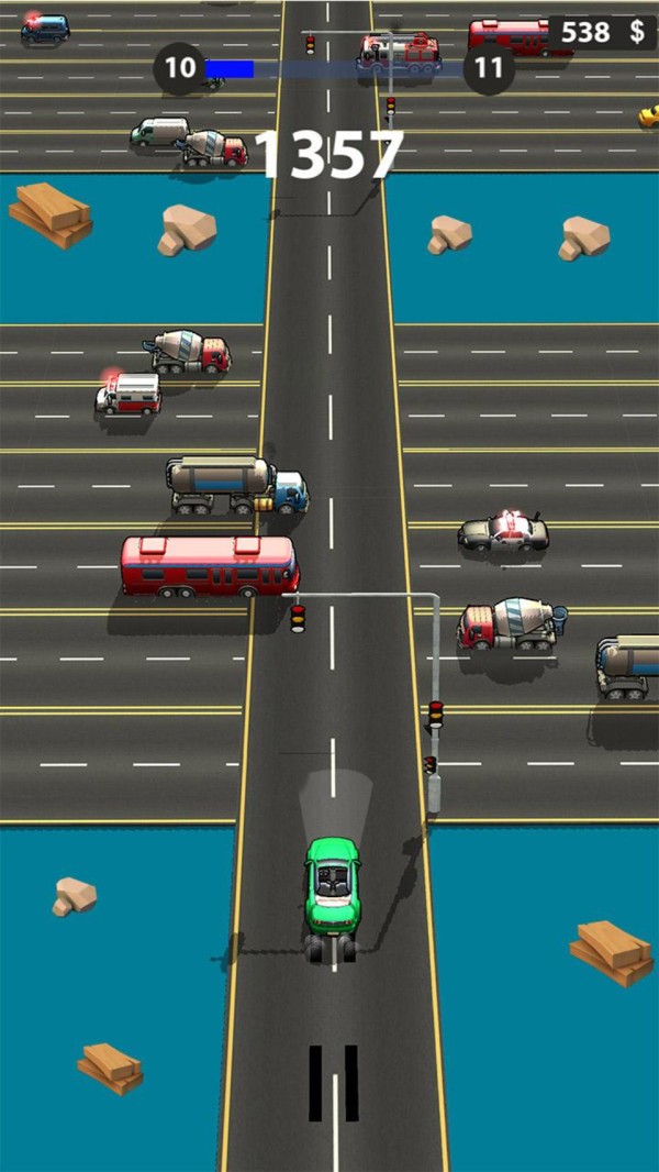 3、繁忙的高速公路上奔跑是游戏的主要挑战,你必须以轻快的速度穿越赛道。