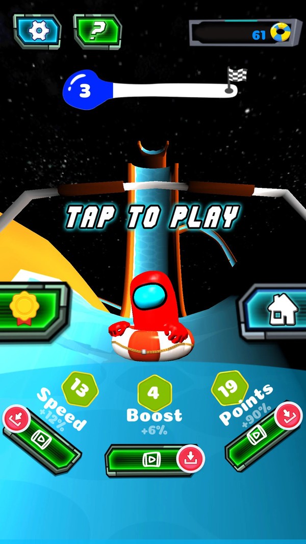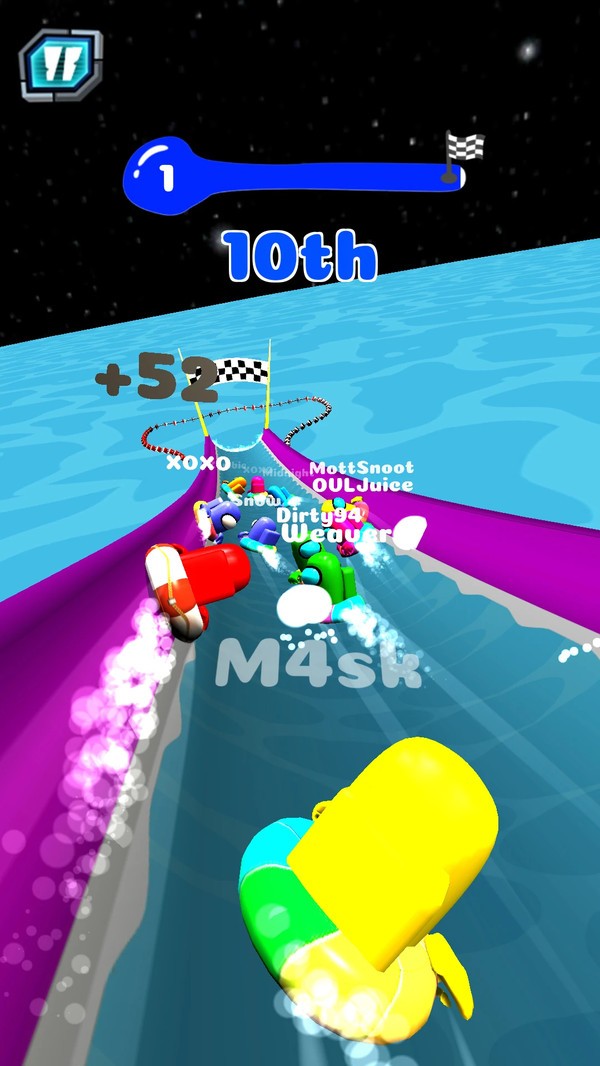 1.到达水滑梯的尽头,尝试成为第一个,比赛中碰撞其他冒名顶替者。