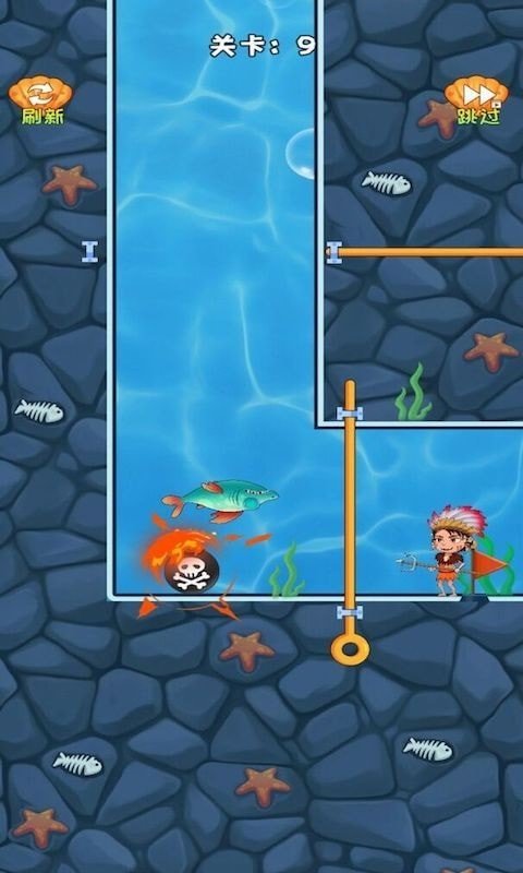 3、卡通的画面看上去也是相当的有趣的。好好思考,救出小鲨鱼会很有成就感。