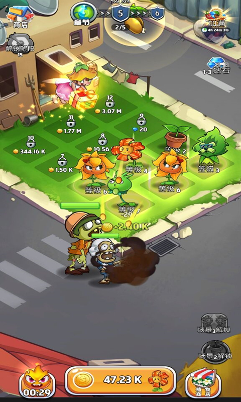 诸如樱桃炸弹或强悍的食人花,更加快速有效的将僵尸阻挡在入侵的道路上。