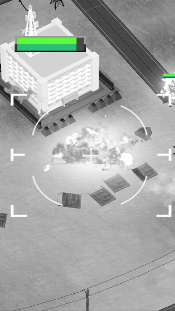 在战争中,冲突最激烈,仰望天空,等待的时刻,以支援地面部队,承担了四海控制,实现的任务,现在在你的手中!前方战场已经进入白热化,而我方已经快要抵御不住了,为了让我们军人们牺牲太大,我决定让你控制王牌武器,无人战斗机前去支援,以影像来刀刀远程操作实施打击敌人。
