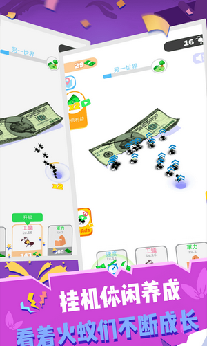 给你赚取金币,你就可以升级更多的蚂蚁;