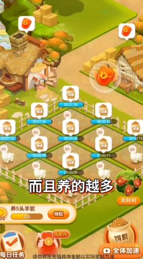 2、不断的扩大自己的农场范围,育成更多的羊驼,赚取的红包会更多。