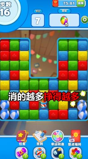 2、轻松愉悦的休闲玩法,快乐的进行消除,完成任务即可免费领取红包;