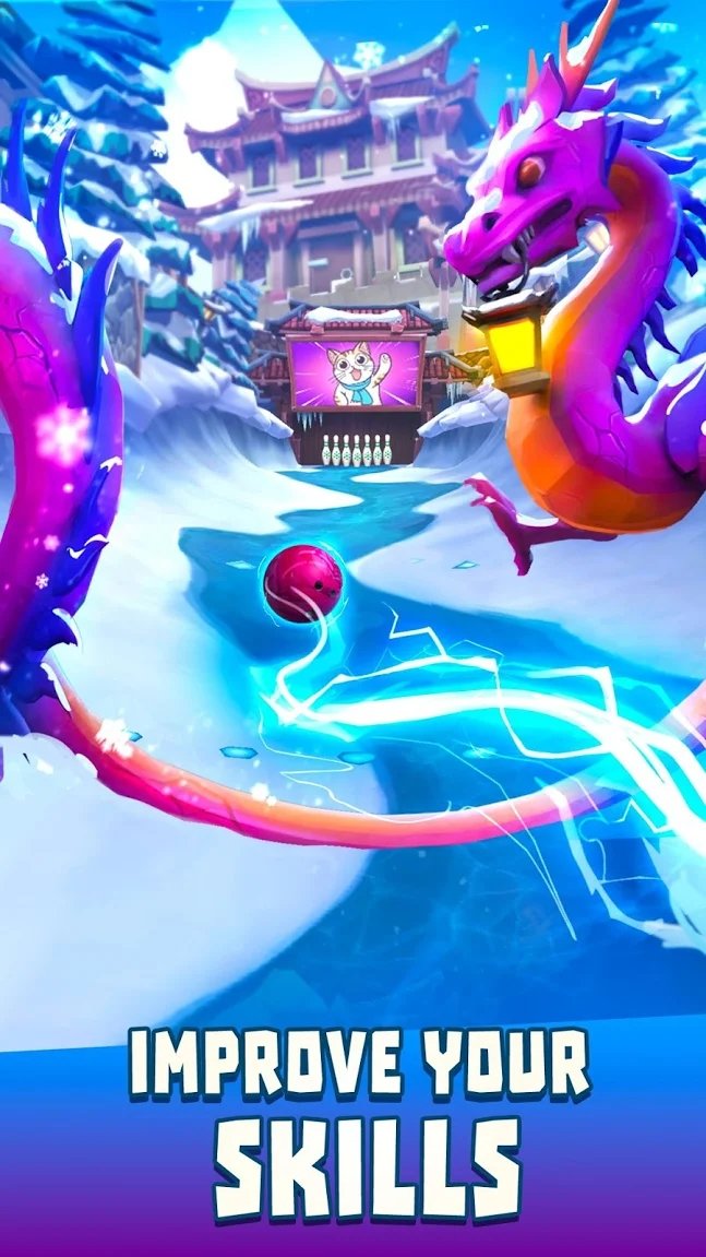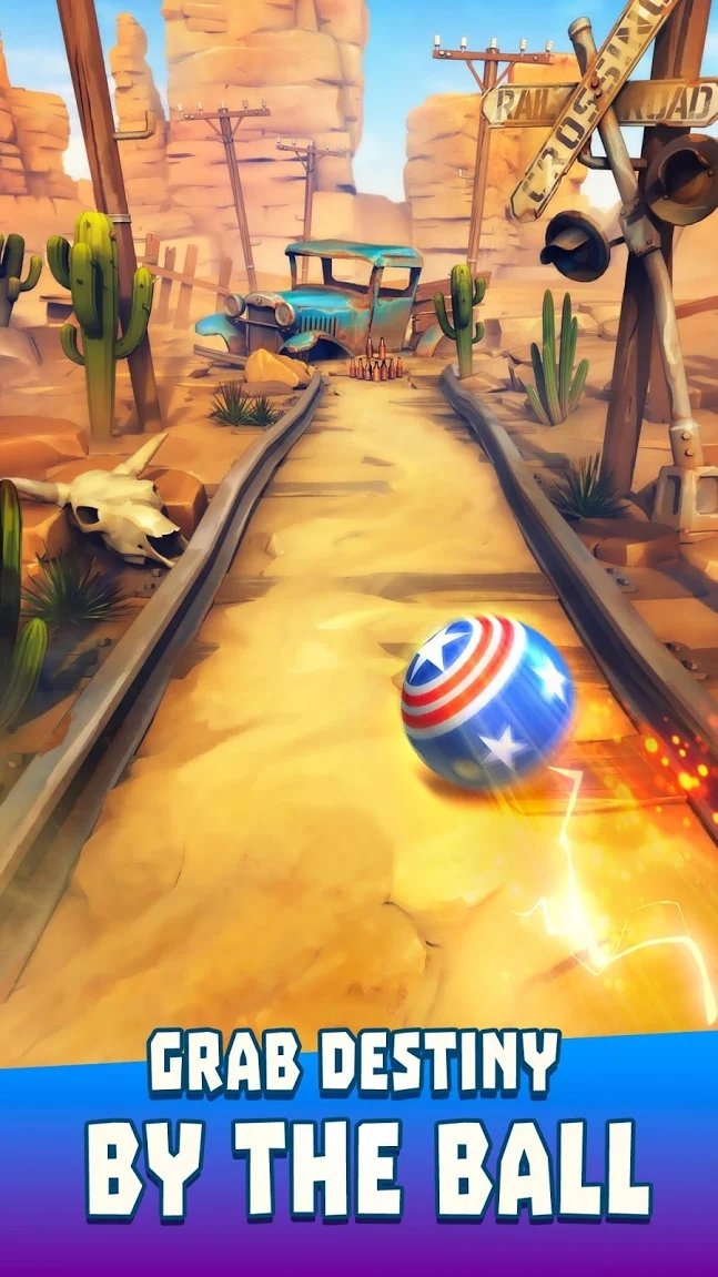 像三跑道跑酷游戏一样,在随机出现的场景中,控制着保龄球来击飞其他球瓶,以及躲避途中的各式障碍物即可。你跑酷的技术越好,最终获得的成绩就会越高。其中,在挑战的过程中,如果运气好的话,你还将会进入到金币多多的“彩虹关卡”,然后快速地收集你想要的金币吧。
