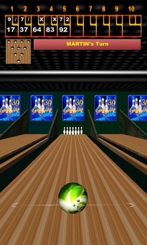 没错,它就是这个游戏的保龄球,前方是十只保龄球瓶安静的立着。在游戏的右下角的一个按钮图标可以选择两侧的球沟是凸起或凹陷。游戏每一局总共十格…...