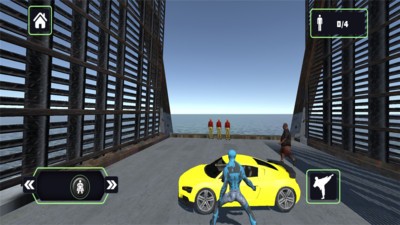 3、在天台上直接一脚将停放的汽车踢飞,瞄准行走的敌人去踢,直接将它们撞晕。