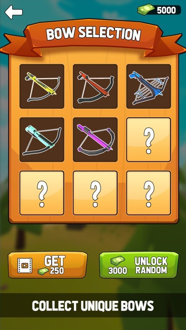 2.玩家在挑战中使用的弓箭越少,获得的分数也就越高,玩家解锁游戏关卡和武器也会更快;
