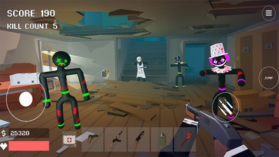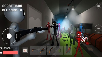 3、控制火柴人在全是僵尸的世界中生存下来,使用武器消灭僵尸