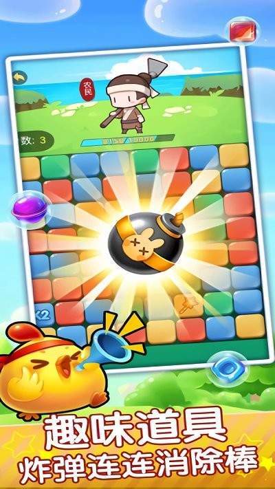 3、没有任何复杂的操作方式,滑动屏幕,游戏支持三消的玩法,
