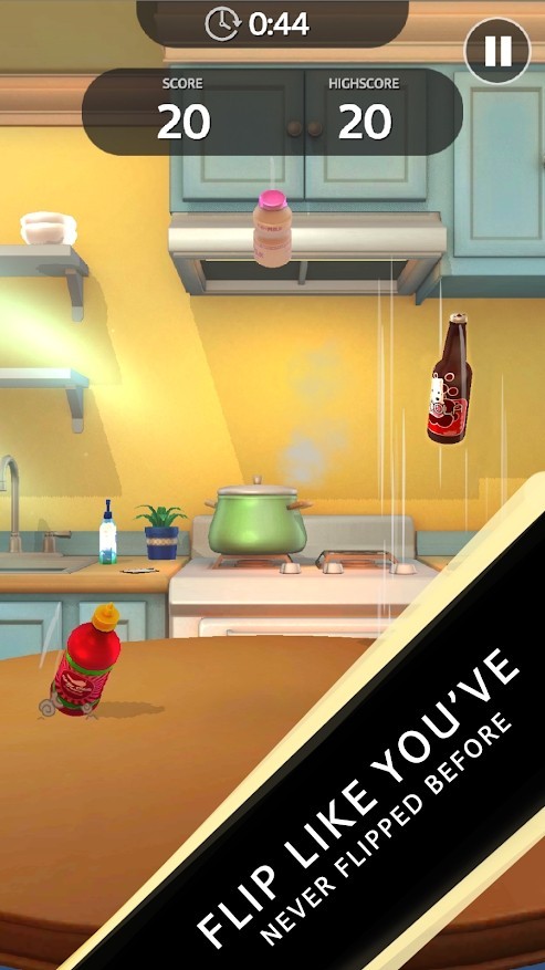1、只需让瓶子不断进行翻转跳跃,降落到各种物体上,总之不要让它掉落;