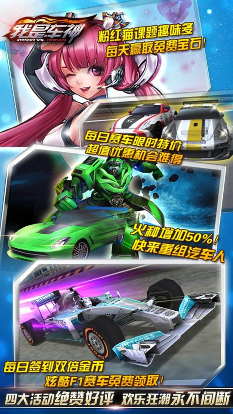 百变酷跑、美女领航陪你左右,激情赛车爱情领航,快来我是车神中体验美女领航全程语音提示的快感吧!