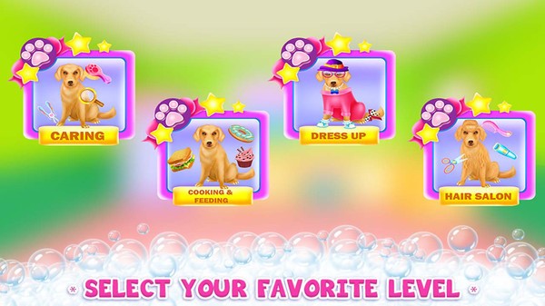 3、自由的玩法,甜美的人设,富有童话幻想感觉的狗狗乐园。