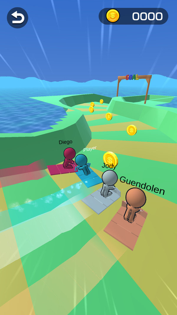 2、画面非常简单明了,控制自己的角色在赛道上加速,通过收集金币来提高你的分数;