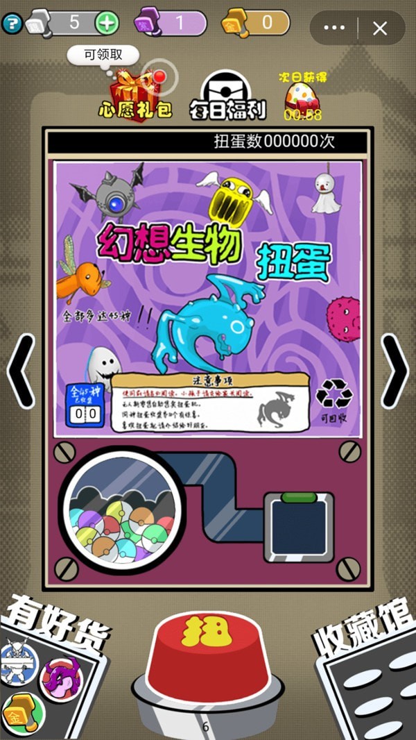 3、魔性有趣的游戏画风,超级可爱的扭蛋机,更多奇妙的扭蛋等你来收集;