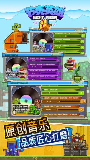 《节奏英雄》是一款好玩的有趣的跑酷类手游。游戏采用开罗的经典卡通像素风,玩法丰富有趣,操作简单易上手。游戏中玩家们可以需要不断的冒险,不同关卡设定挑战节奏极限,多种多样角色解锁等你来体验。你还等什么?赶快下载体验吧。