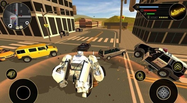 机器人车游戏是一款刺激的机器人战斗类游戏,将机器人汽车以及摩托车机器人运输到警察的卡车以及货运飞机上,一起飞到纽约的警察局的警察宿舍,并且将它们变成机器人的过程,控制自己的机器人在不同的场景之中去进行冒险战斗,你需要将颜色的敌人全部都进行消灭,多种不同的形态看起来也是非常的炫酷的,战斗也是非常的热血沸腾的,你需要守护自己的城市不受任何的威胁,快来下载体验吧。