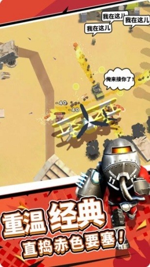 赤色战场游戏是款玩家要凭借自己的实力来营救士兵的策略对战游戏,在敌人的火力封锁中,击毁敌人的战争机器,营救我方士兵,无尽闯关,挑战自我,在宣泄的炮火中抒写出安全。这场战争已经进入了白热化阶段,我的多名士兵被关押在敌人重兵把守的基地,也就是赤色要塞中,对此,我们排出了精锐的财狼小队,突破敌军封锁,完成营救任务,直捣敌人部队。各种优质的武器等你来选择,有感兴趣的玩家快来摧毁敌人的军事要塞吧!